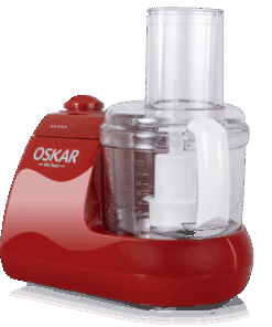 OSKAR mit Behälter, Deckel, Stöpsel, Stahlmesser und Rezepten.